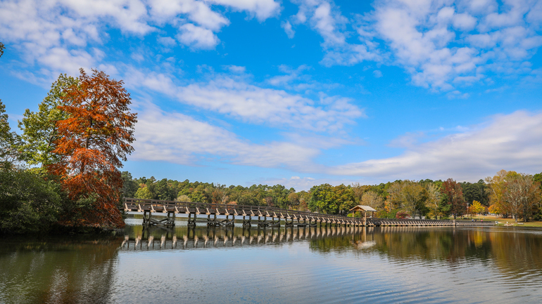 Chickasaw State Park was named for the Chickasaw Tribe who once inhabited West Tennessee and North Mississippi. Situated on some of the highest terrain in West Tennessee, the park encompasses 1,280 acres of recreational land within a 14,384-acre timberland area. Visitors can enjoy hiking trails, bicycle-friendly roads, horseback riding, and time on the water with paddling rentals on Lake Placid. Night accommodations include cozy cabins and campsites for RV's and tents, as well as sites designed for guests traveling with horses.
